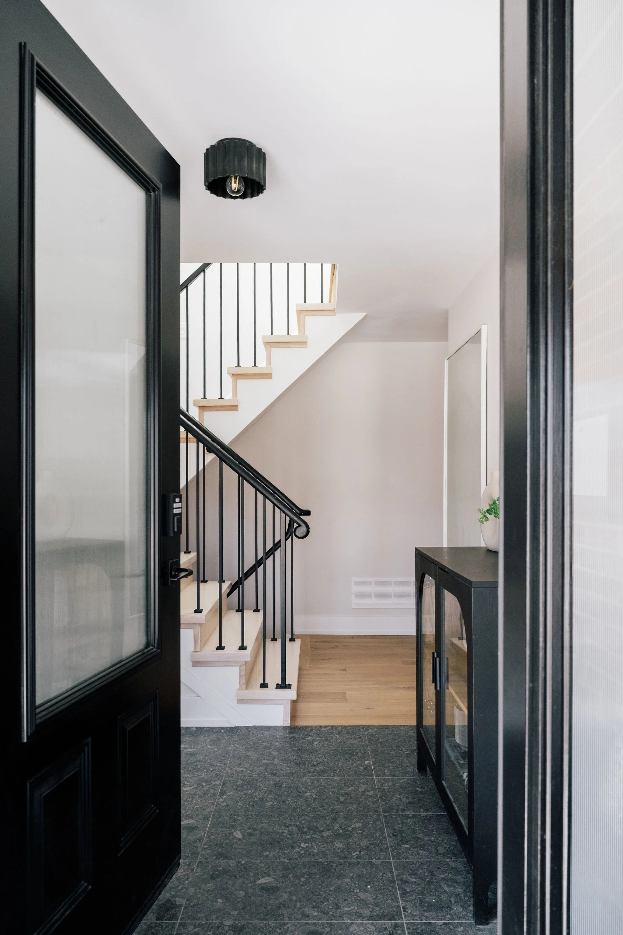 This mid-century modern era split level home was completely renovated to create a beautiful cohesive space. Using shades of black, white and a dash of blush we might have a mid-century modern crush! More photos to follow.
